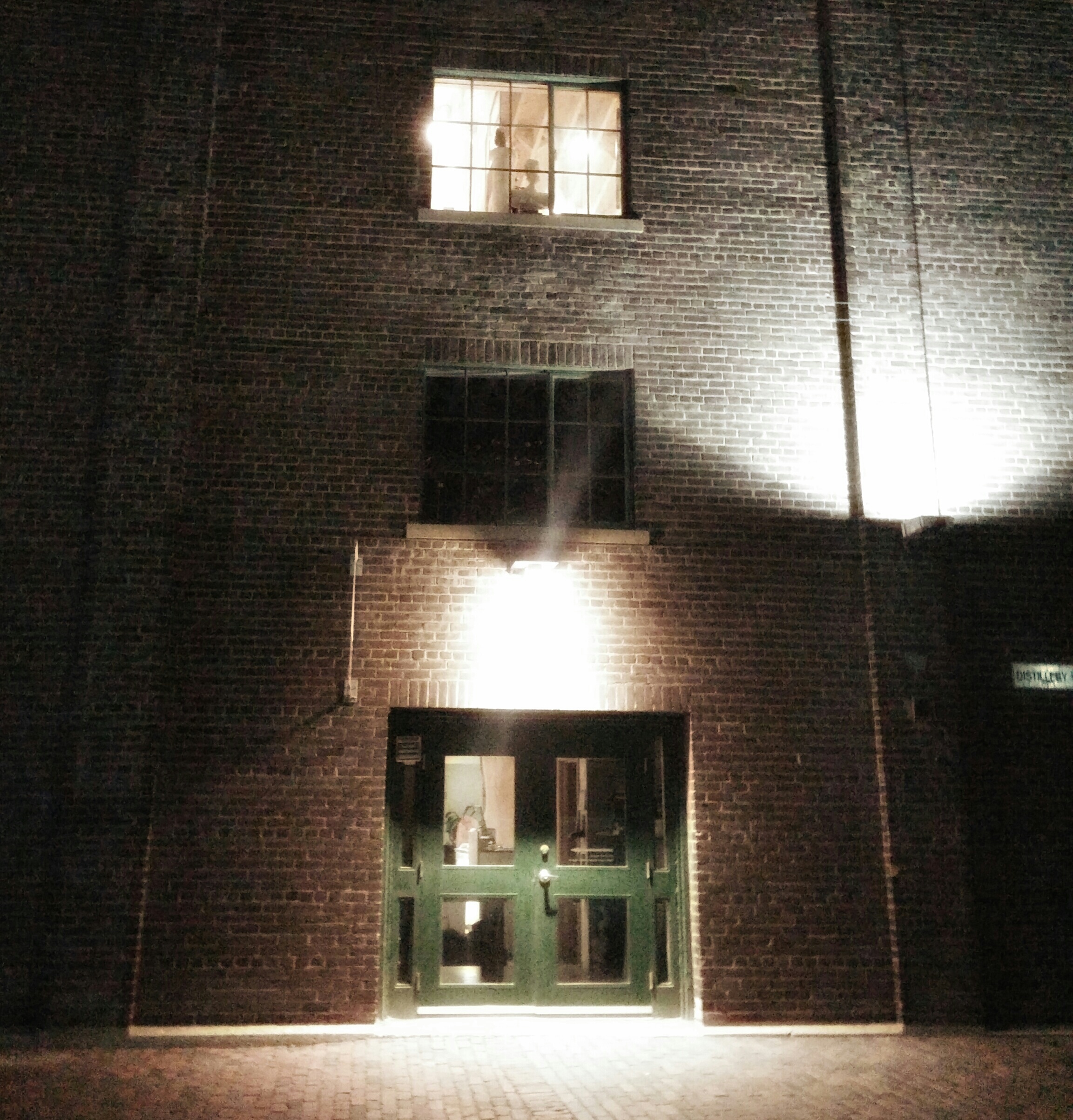 Can you see our space, up there in the bright light on the third floor?IMG_20150918_203402-01-01Tuesday had been the final preparation of the large colour images for the dress rehearsal that night and then show opening Wednesday. Printing and mounting this combination of old photo resuscitation and photoshop art that I started to really love doing – Photoshop is growing on me.
