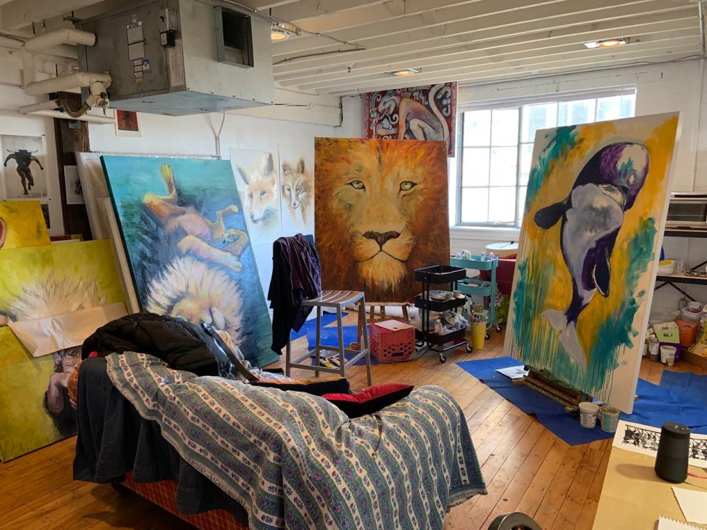But in those still more wintery than spring days of April, I would arrive to this room full of giant 5 and 6 foot paintings of animals, look around and just burst into tears.