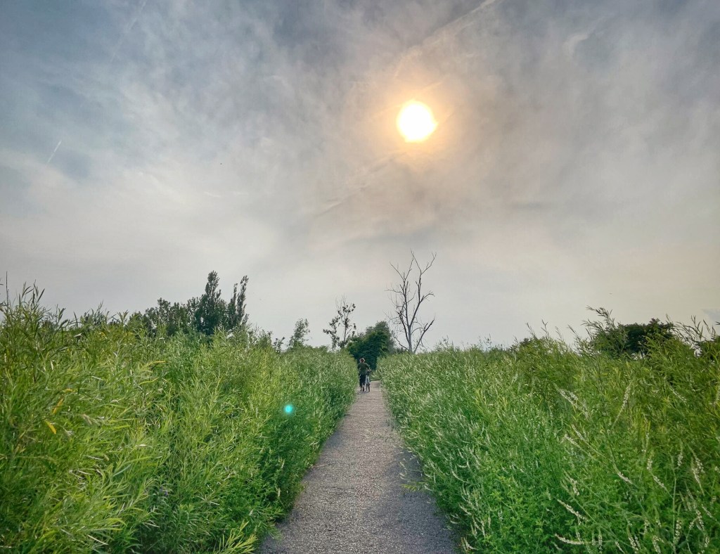 Settling into the chair, a huge murmuration of hundreds of birds suddenly burst forth from the park next door and spread out across the city. Without thinking, I looked for the kitty cat, to point out to her this happy deluge of birds…