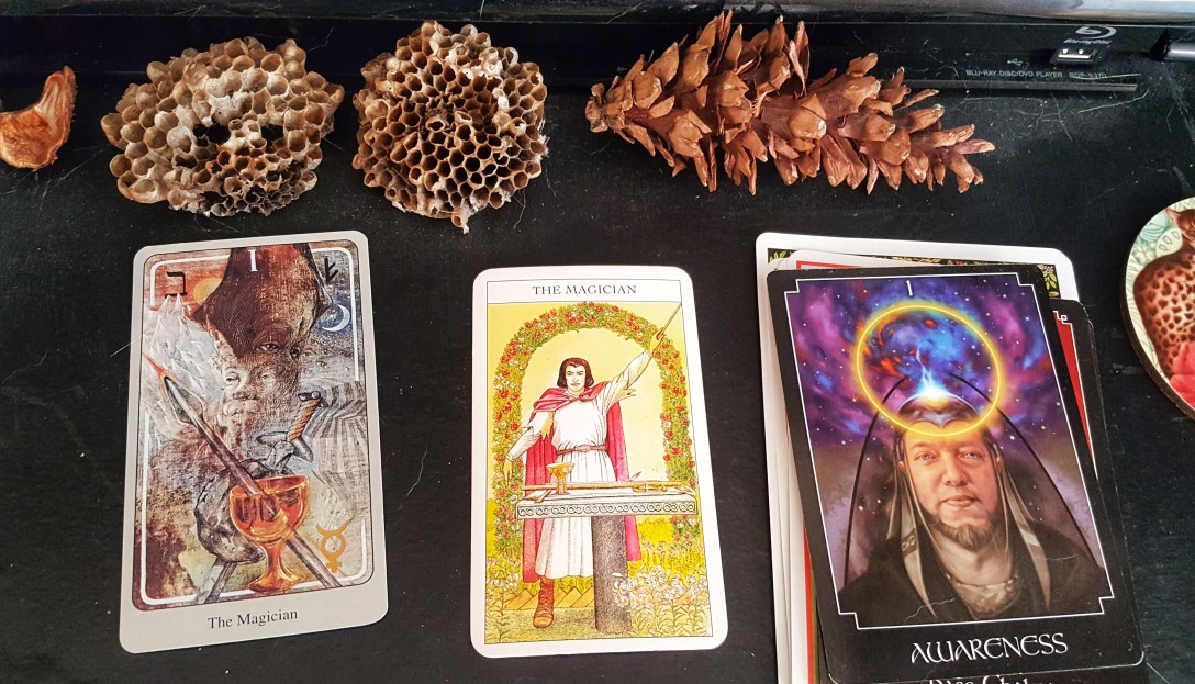 We learned a “manifesting technique” that, in its series of movements, reminded me for all the world of the Magician card in the tarot deck – reaching up to the sky above, and down below to the earth in the process of creation…