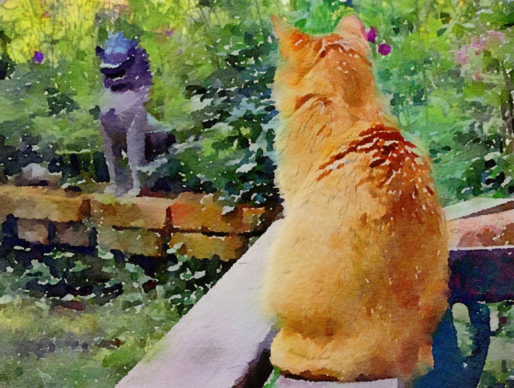 Morning on the balcony the other day, and the first thing I noticed was that a fellow had gone through the break in the fence and was digging around in the scrabbly dirt.