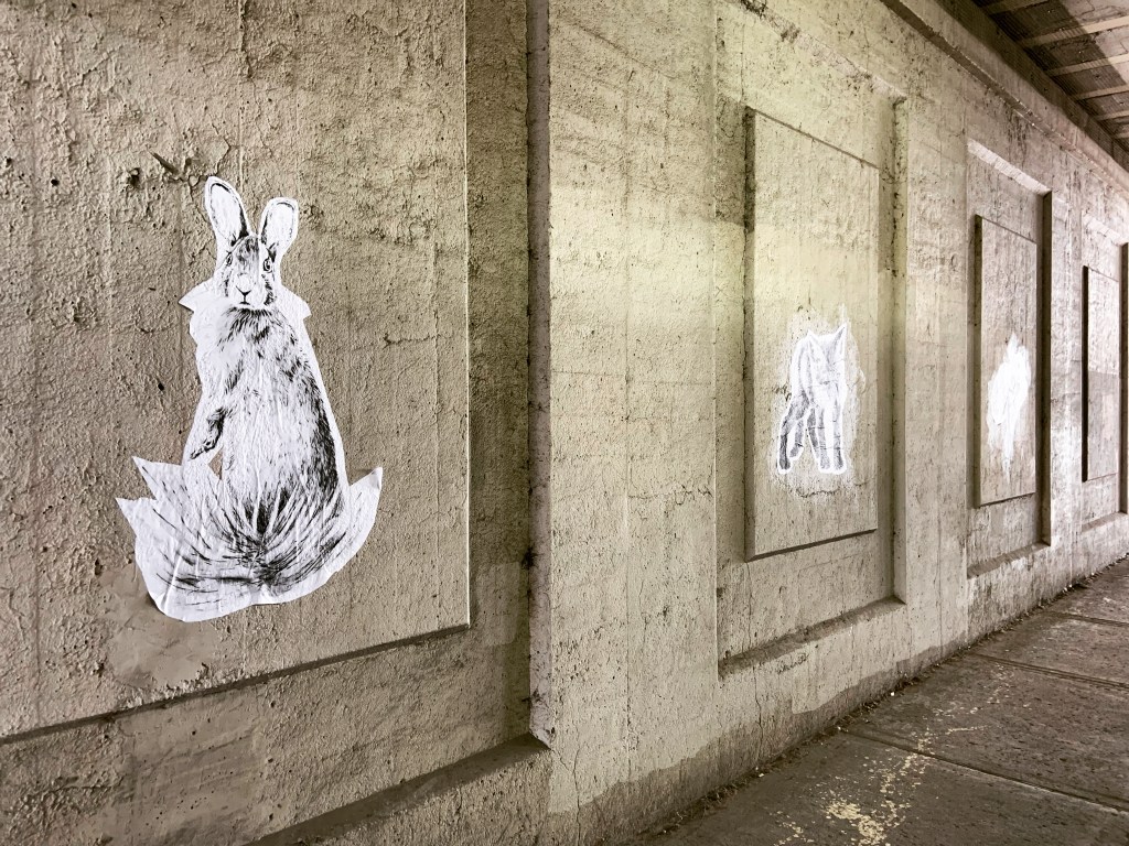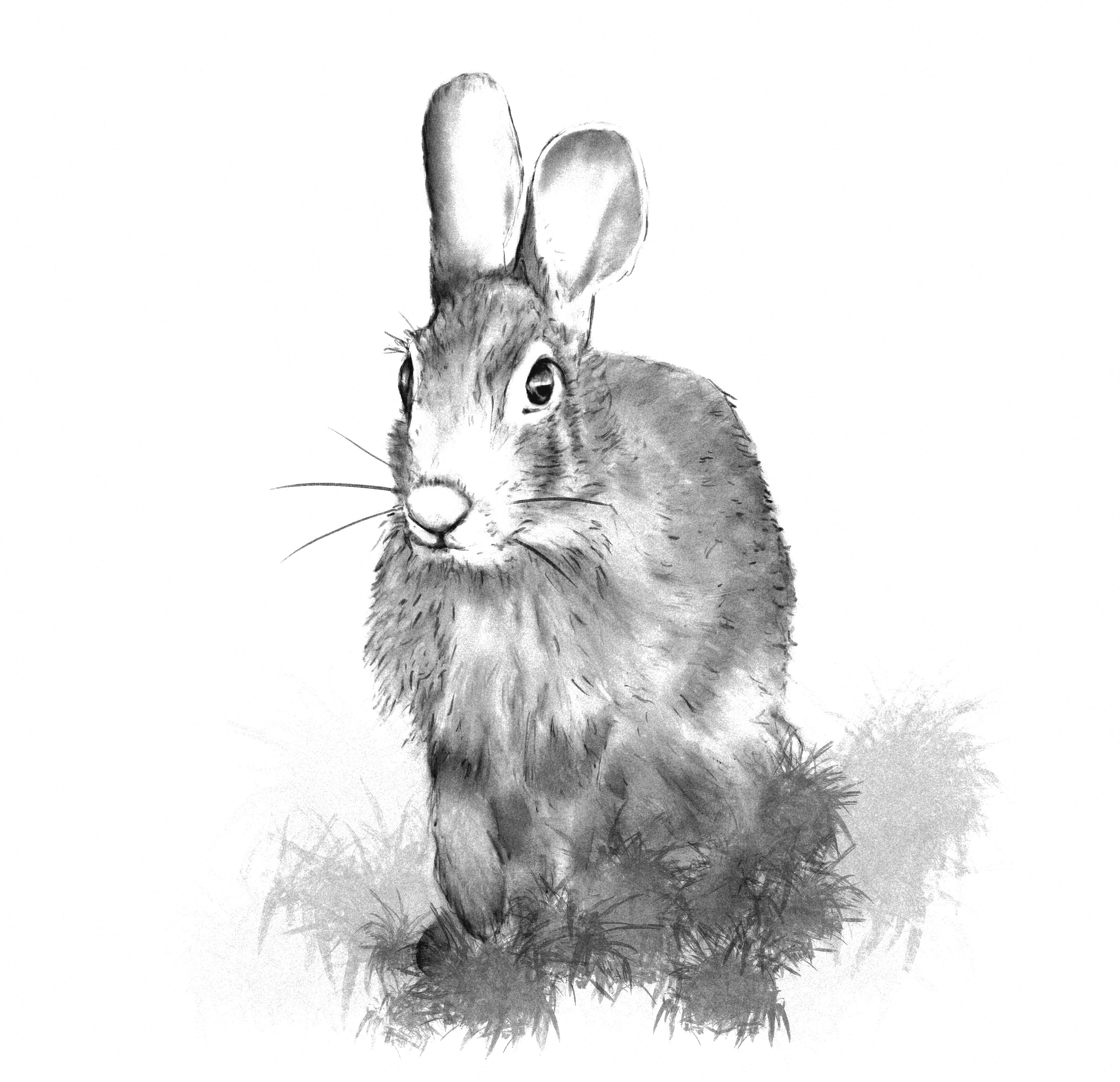 Seated Hare – charcoal, white charcoal, and watercolour on paper