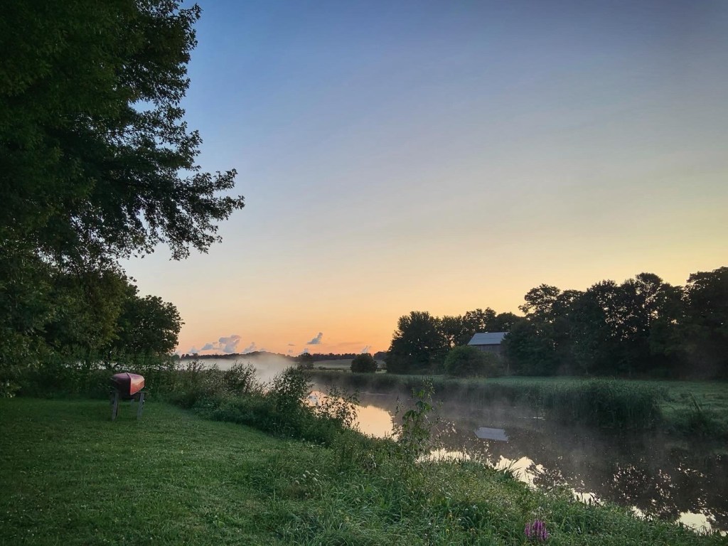 Still later in the summer I was up near Owen Sound (yes, I did make a point of jumping on every chance that appeared to get out of town and enjoy summertime and nature and friends I don’t see often enough…) and I was staying in a little cabin by the river. Each morning I’d get up early with the sunrise and walk down to river, my bare feet delighting in the cold dewy grass of early morning and the soft tender nurturing feeling of grass and earth underneath my feet.