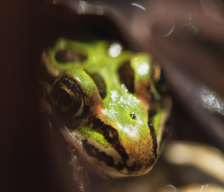 And well, look who’s here – the rough croaks from the ponds and puddles all along the flooded walkway freeze time and I squat to take a closer look. Who cares if I’m late? I mean really – let’s talk priorities. There is a rarely seen friend here, the moment suddently so exquisite, it’s impossible to rush.